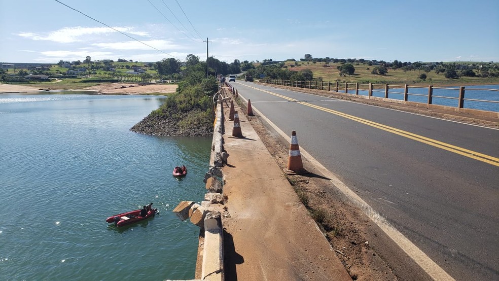 Ainda segundo a corporação, ele foi localizado entre o carro e o caminhão que estavam submersos a cerca de 13 metros de profundidade. Ainda não é possível afirmar em qual veículo a vítima estava.