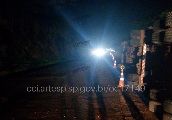 A carreta foi levada para o acostamento, onde permanece tombada. A carga foi retirada do local e será avaliada pela seguradora. No momento do acidente, o tempo era bom e a pista estava seca.