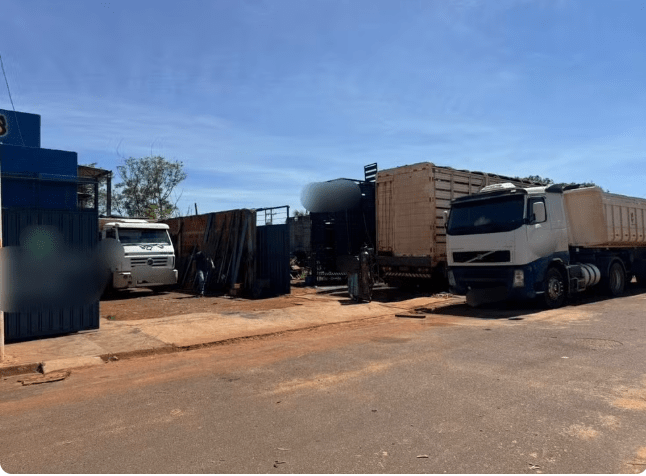 Oficina em Populina onde a criança esquecida no ônibus da Prefeitura de Mesópolis (SP) foi encontrada pelos mecânicos — Foto: Muryel Boian/TV TEM