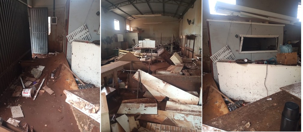 O empresário conta que logo pela manhã daquele domingo a água já havia atingido cerca de 2,20 metros de altura, destruindo maquinários da serraria e muitos produtos como armários e balcões já prontos para serem instalados nas casas dos clientes, além de todo a matéria-prima do negócio, placas de madeira.