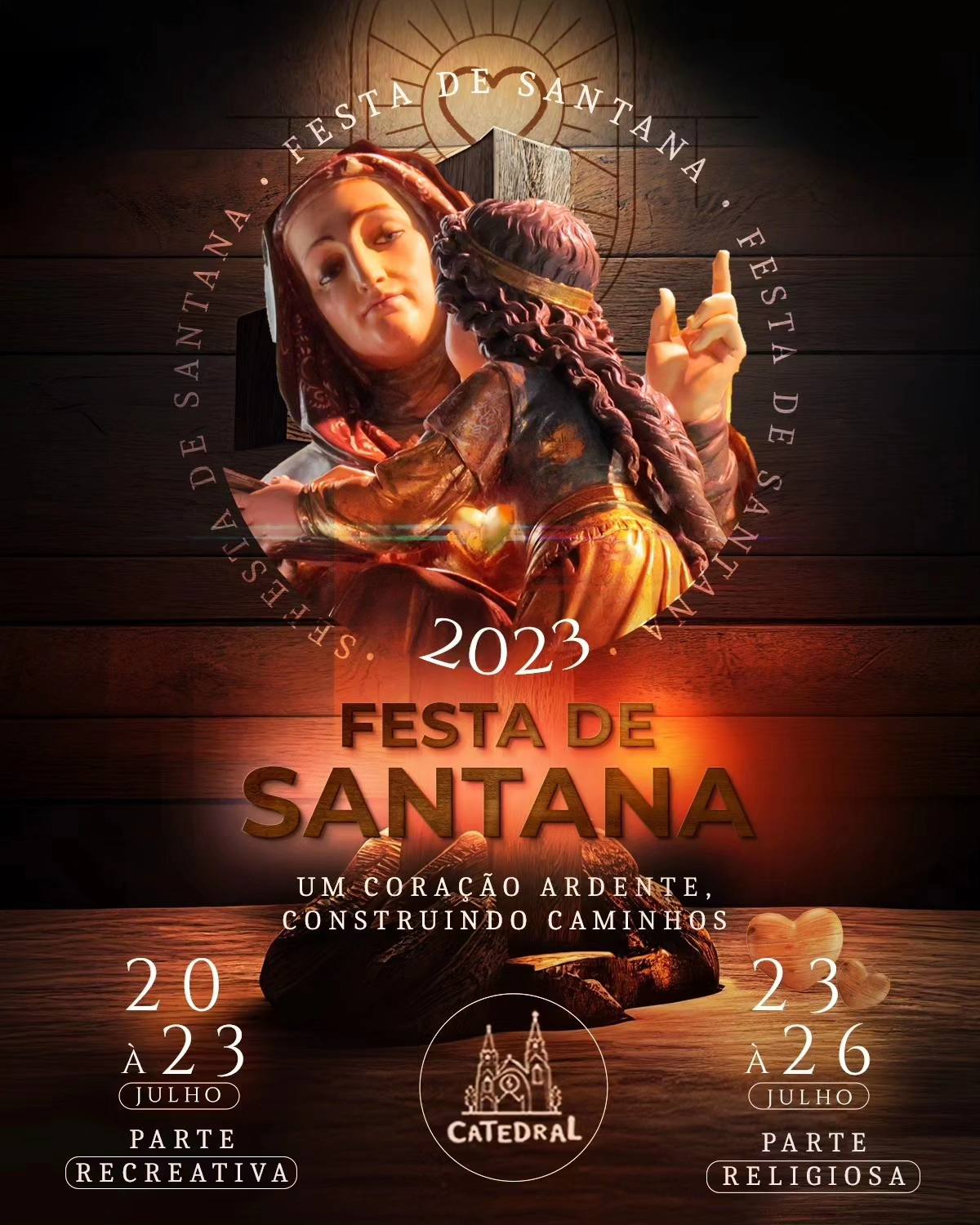 A parte religiosa será de 23 a 26 (domingo a quarta-feira) com o tema: um coração ardente, construindo caminhos.