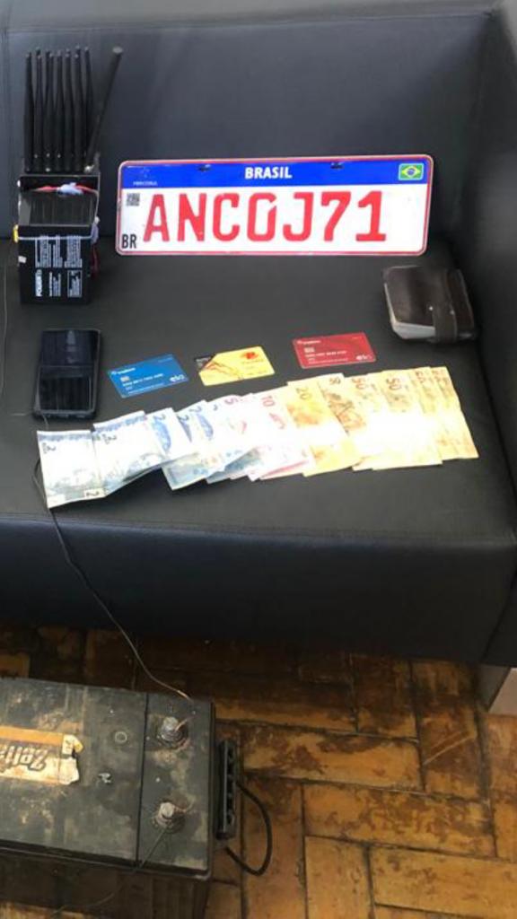 Ao realizar vistoria na carreta, foi localizado no compartimento de carga um equipamento próprio para bloquear sinal de rastreador.