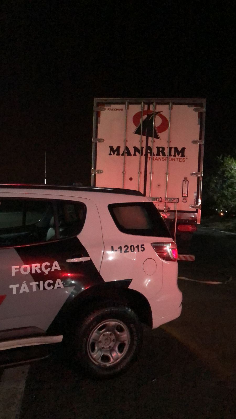Na madrugada desta quinta-feira (22/07) equipe de Força Tática juntamente com o Comando de Força Patrulha e equipes da 2° Cia PM de São Manuel – SP, tomaram ciência de Roubo de Carga e Veículo com retenção de vítima, pela rodovia Marechal Rondon, diante das informações foi realizado um cerco policial, sendo que a equipe de FORÇA TÁTICA logrou êxito em abordar pelo Km 181 da Rodovia Geraldo de Barros um conjunto Cavalo mecânico (Veículo utilizado para o tracionamento de carretas) sendo constado que a placa da carreta foi trocada.