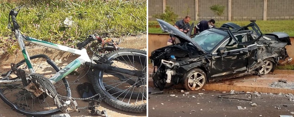 O veículo ainda subiu na calçada e destruiu um poste. O ciclista foi arremessado e caiu sobre um canteiro central elevado. Ele morreu na hora.