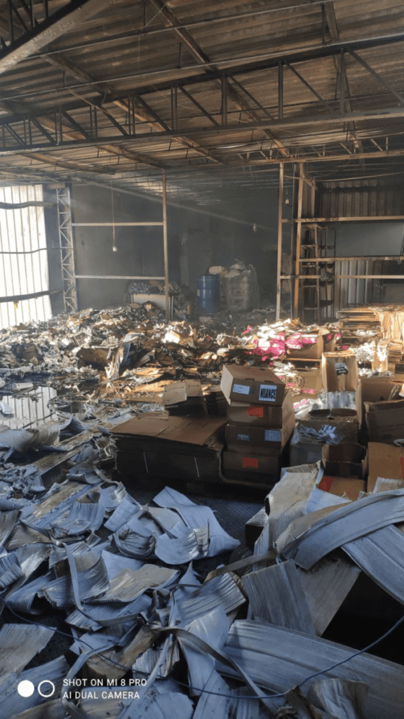 Foi atingida uma área total de 500 metros² de produtos prontos e a ação inicialmente da brigada e em seguida dos bombeiros evitou que o fogo chegasse a outros galpões e em casas vizinhas.
