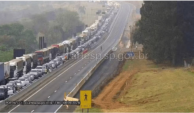 Segundo a concessionária Eixo SP, por volta das 19h havia 10 km de congestionamento na pista sentido capital e outros 4 km no sentido Interior.