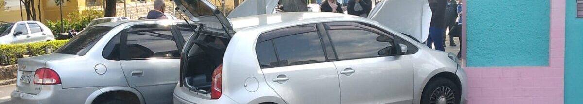 A batida envolvendo dois carros aconteceu no sentido de descida da Avenida Santana, no semáforo antes da Escola Industrial. No endereço existe semáforo.